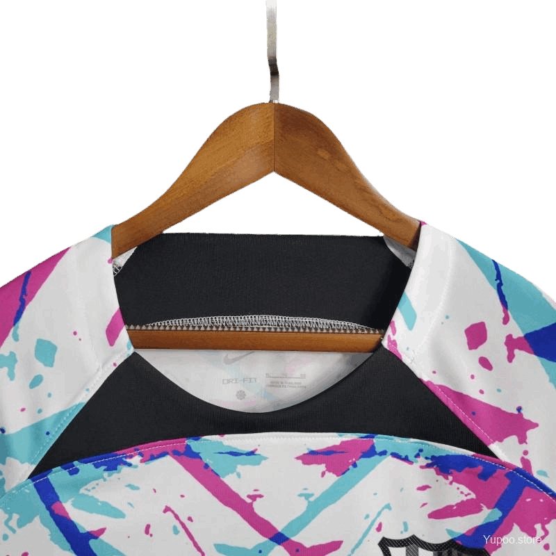 Our Barcelona White training kit 23-24 - Fan version kits are a tribute to tradition, meticulously crafted with enduring quality. Expect impeccable stitching, comfort, and durability, all at a surprisingly affordable price.